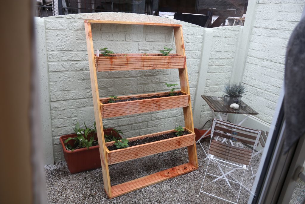 Wie Ihr Euch die Pflanztreppe bauen möchtet, das bleibt Euch und dem Raum den Ihr habt überlassen. Hier meine Grundanleitung für ein schönes und praktisches Vertical Gardening-Element. Diese hier steht übrigens 79 cm von der Wand ab, ist 1,58 m hoch und hat 3, je 1 m x 14 cm große Pflanzkisten.