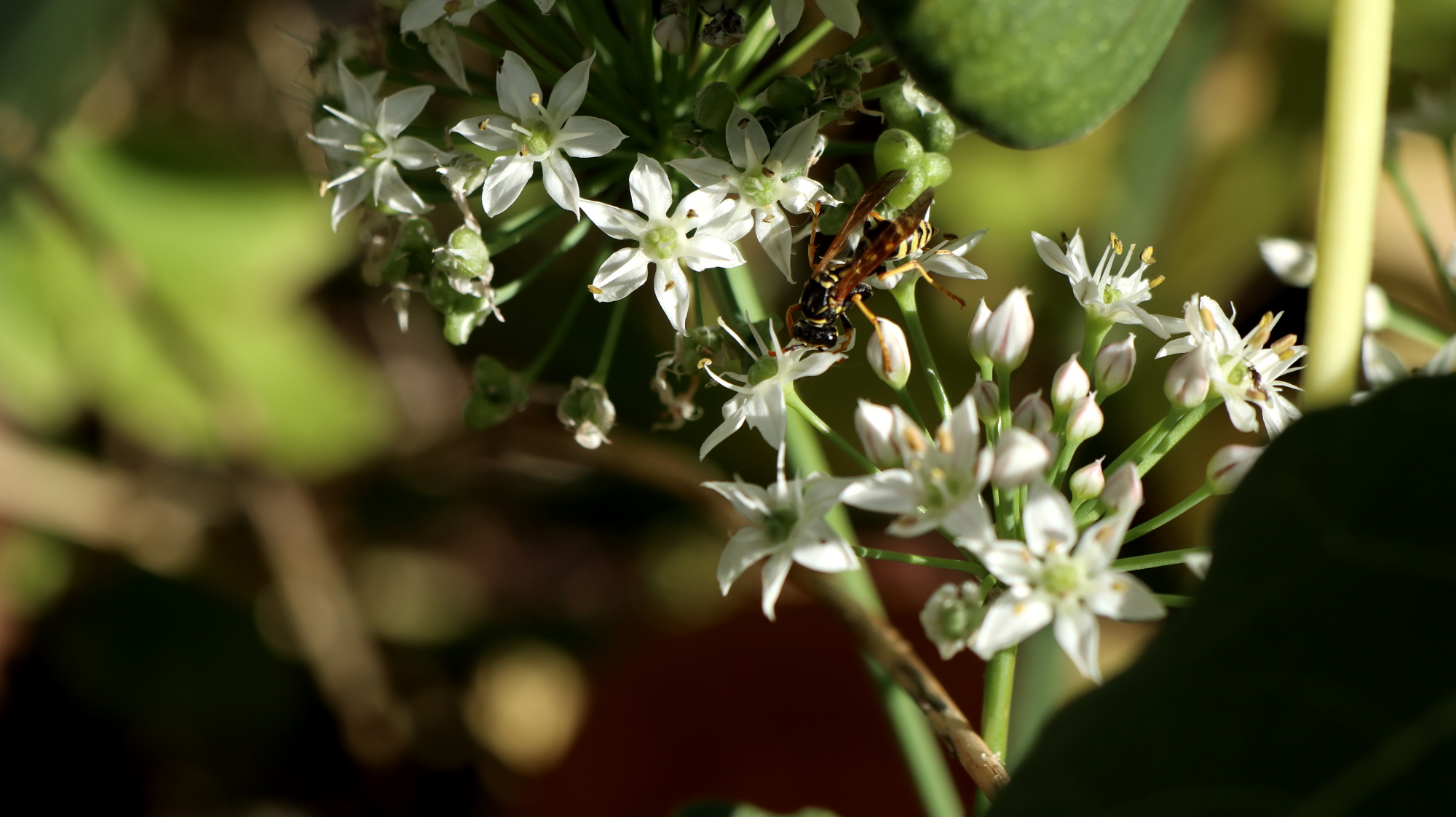Blüten im Oktober Nektarpflanzen Allium Knobigras mit Wespe klein ShareTweetPin ItShare ShareTweetPin ItShare